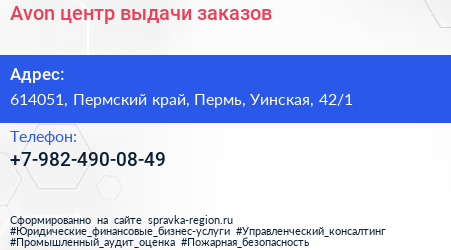 Avon, центр выдачи заказов по адресу 614051, Пермский край, Пермь, Уинская, 42/1 в дальнейшем Организация, размещена в следующих категориях: