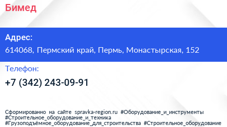 Бимед по адресу 614068, Пермский край, Пермь, Монастырская, 152 в дальнейшем Организация, размещена в следующих категориях: