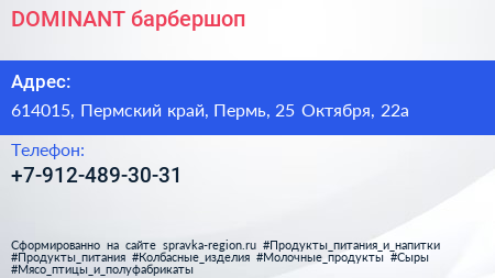 DOMINANT, барбершоп по адресу 614015, Пермский край, Пермь, 25 Октября, 22а в дальнейшем Организация, размещена в следующих категориях: