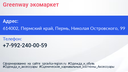Greenway, экомаркет по адресу 614002, Пермский край, Пермь, Николая Островского, 99 в дальнейшем Организация, размещена в следующих категориях: