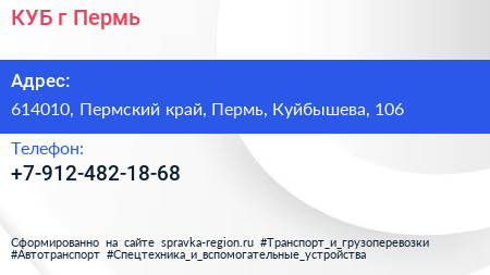 КУБ, г. Пермь по адресу 614010, Пермский край, Пермь, Куйбышева, 106 в дальнейшем Организация, размещена в следующих категориях: