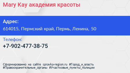 Mary Kay, академия красоты по адресу 614015, Пермский край, Пермь, Ленина, 50 в дальнейшем Организация, размещена в следующих категориях: