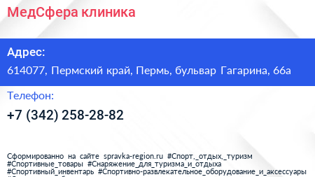 МедСфера, клиника по адресу 614077, Пермский край, Пермь, бульвар Гагарина, 66а в дальнейшем Организация, размещена в следующих категориях: