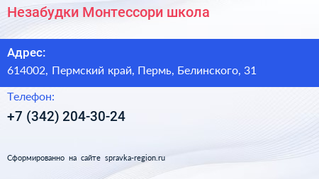 Незабудки, Монтессори-школа по адресу 614002, Пермский край, Пермь, Белинского, 31 в дальнейшем Организация, размещена в следующих категориях:
