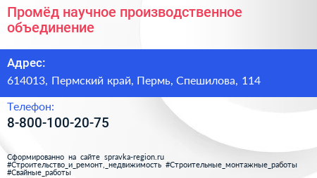 Промёд, научное производственное объединение по адресу 614013, Пермский край, Пермь, Спешилова, 114 в дальнейшем Организация, размещена в следующих категориях: