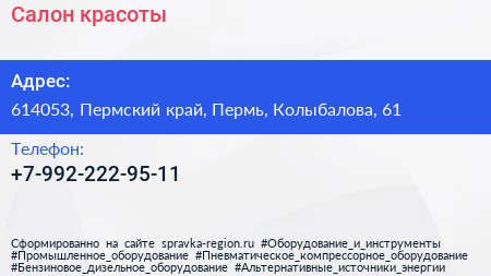 Салон красоты по адресу 614053, Пермский край, Пермь, Колыбалова, 61 в дальнейшем Организация, размещена в следующих категориях:
