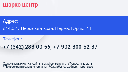 Шарко-центр по адресу 614051, Пермский край, Пермь, Юрша, 11 в дальнейшем Организация, размещена в следующих категориях:
