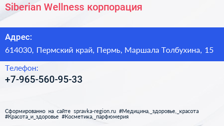 Siberian Wellness, корпорация по адресу 614030, Пермский край, Пермь, Маршала Толбухина, 15 в дальнейшем Организация, размещена в следующих категориях: