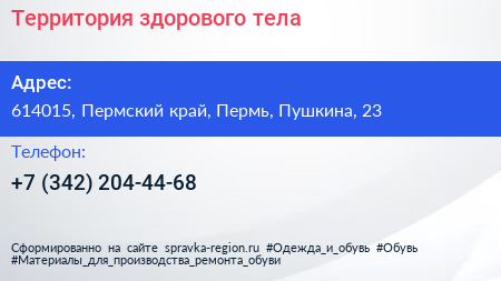 Территория здорового тела по адресу 614015, Пермский край, Пермь, Пушкина, 23 в дальнейшем Организация, размещена в следующих категориях: