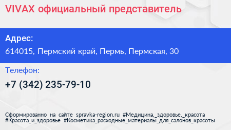 VIVAX, официальный представитель по адресу 614015, Пермский край, Пермь, Пермская, 30 в дальнейшем Организация, размещена в следующих категориях: