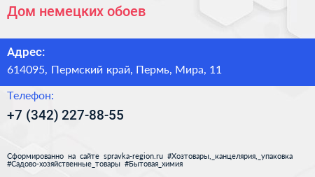 Дом немецких обоев по адресу 614095, Пермский край, Пермь, Мира, 11 в дальнейшем Организация, размещена в следующих категориях: