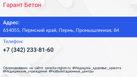 Гарант-Бетон по адресу 614055, Пермский край, Пермь, Промышленная, 84 в дальнейшем Организация, размещена в следующих категориях: