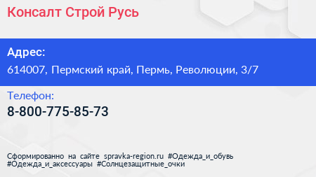 Консалт Строй-Русь по адресу 614007, Пермский край, Пермь, Революции, 3/7 в дальнейшем Организация, размещена в следующих категориях: