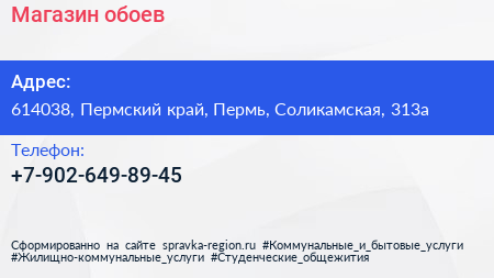Магазин обоев по адресу 614038, Пермский край, Пермь, Соликамская, 313а в дальнейшем Организация, размещена в следующих категориях: