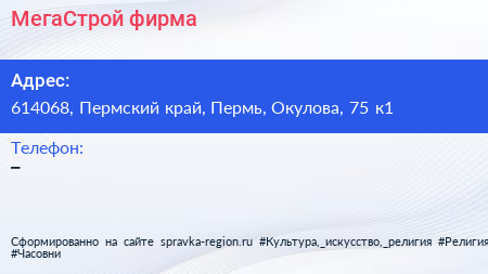 МегаСтрой, фирма по адресу 614068, Пермский край, Пермь, Окулова, 75 к1 в дальнейшем Организация, размещена в следующих категориях: