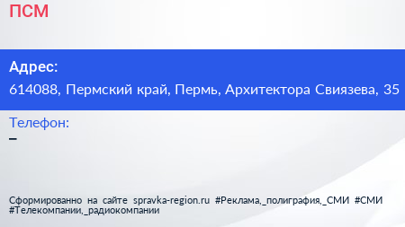 ПСМ по адресу 614088, Пермский край, Пермь, Архитектора Свиязева, 35 в дальнейшем Организация, размещена в следующих категориях: