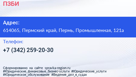 ПЗБИ по адресу 614065, Пермский край, Пермь, Промышленная, 121а в дальнейшем Организация, размещена в следующих категориях: