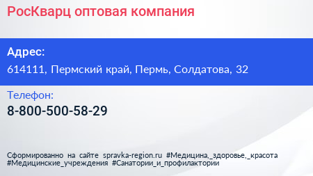 РосКварц, оптовая компания по адресу 614111, Пермский край, Пермь, Солдатова, 32 в дальнейшем Организация, размещена в следующих категориях: