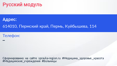 Русский модуль по адресу 614010, Пермский край, Пермь, Куйбышева, 114 в дальнейшем Организация, размещена в следующих категориях:
