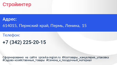 Стройинтер по адресу 614015, Пермский край, Пермь, Ленина, 15 в дальнейшем Организация, размещена в следующих категориях: