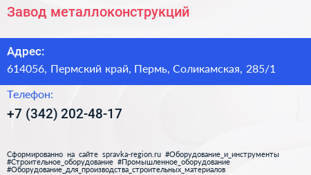 Завод металлоконструкций по адресу 614056, Пермский край, Пермь, Соликамская, 285/1 в дальнейшем Организация, размещена в следующих категориях:
