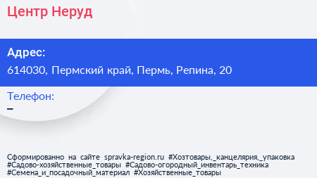 Центр Неруд по адресу 614030, Пермский край, Пермь, Репина, 20 в дальнейшем Организация, размещена в следующих категориях: