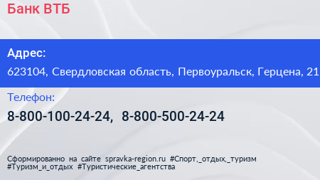 Банк ВТБ по адресу 623104, Свердловская область, Первоуральск, Герцена, 21 в дальнейшем Организация, размещена в следующих категориях: