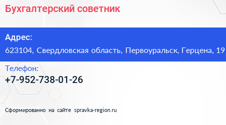 Бухгалтерский советник по адресу 623104, Свердловская область, Первоуральск, Герцена, 19 в дальнейшем Организация, размещена в следующих категориях: