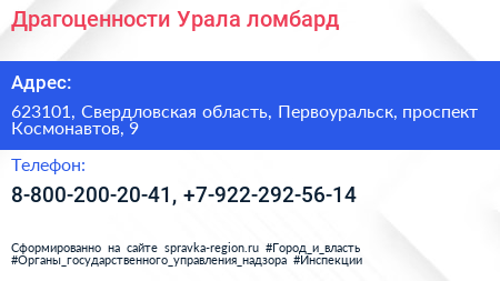 Драгоценности Урала, ломбард по адресу 623101, Свердловская область, Первоуральск, проспект Космонавтов, 9 в дальнейшем Организация, размещена в следующих категориях: