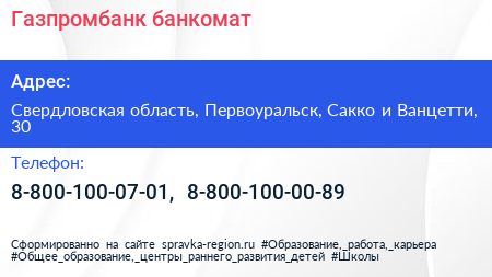 Газпромбанк, банкомат по адресу Свердловская область, Первоуральск, Сакко и Ванцетти, 30 в дальнейшем Организация, размещена в следующих категориях: