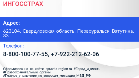 ИНГОССТРАХ по адресу 623104, Свердловская область, Первоуральск, Ватутина, 33 в дальнейшем Организация, размещена в следующих категориях: