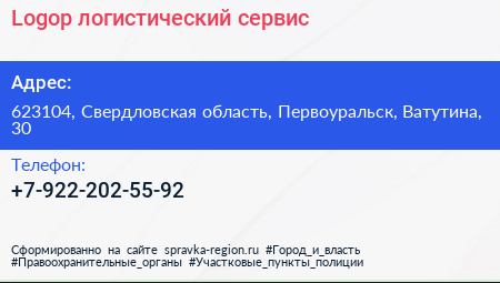 Logop, логистический сервис по адресу 623104, Свердловская область, Первоуральск, Ватутина, 30 в дальнейшем Организация, размещена в следующих категориях: