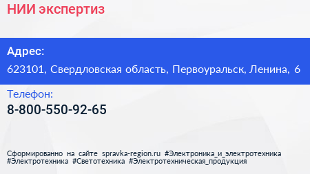 НИИ экспертиз по адресу 623101, Свердловская область, Первоуральск, Ленина, 6 в дальнейшем Организация, размещена в следующих категориях: