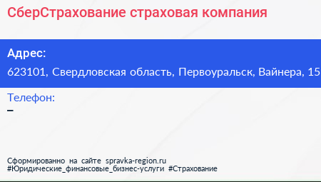 СберСтрахование, страховая компания по адресу 623101, Свердловская область, Первоуральск, Вайнера, 15 в дальнейшем Организация, размещена в следующих категориях: