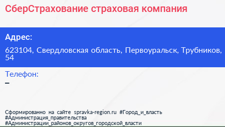 СберСтрахование, страховая компания по адресу 623104, Свердловская область, Первоуральск, Трубников, 54 в дальнейшем Организация, размещена в следующих категориях: