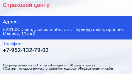 Страховой центр по адресу 623103, Свердловская область, Первоуральск, проспект Ильича, 13а к2 в дальнейшем Организация, размещена в следующих категориях: