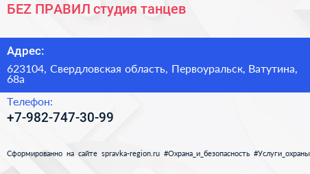 БЕZ ПРАВИЛ, студия танцев по адресу 623104, Свердловская область, Первоуральск, Ватутина, 68а в дальнейшем Организация, размещена в следующих категориях: