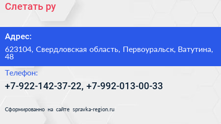Слетать.ру по адресу 623104, Свердловская область, Первоуральск, Ватутина, 48 в дальнейшем Организация, размещена в следующих категориях: