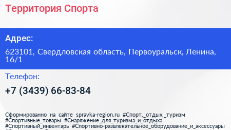 Территория Спорта по адресу 623101, Свердловская область, Первоуральск, Ленина, 16/1 в дальнейшем Организация, размещена в следующих категориях: