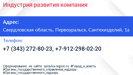 Индустрия развития, компания по адресу Свердловская область, Первоуральск, Сантехизделий, 1а в дальнейшем Организация, размещена в следующих категориях: