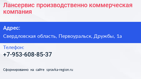Лансервис, производственно-коммерческая компания по адресу Свердловская область, Первоуральск, Дружбы, 1а в дальнейшем Организация, размещена в следующих категориях:
