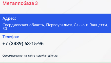 Металлобаза №3 по адресу Свердловская область, Первоуральск, Сакко и Ванцетти, 30 в дальнейшем Организация, размещена в следующих категориях: