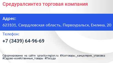 Средуралсинтез, торговая компания по адресу 623101, Свердловская область, Первоуральск, Емлина, 20 в дальнейшем Организация, размещена в следующих категориях: