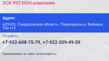 ЗСК-РЕГИОН, компания по адресу 623101, Свердловская область, Первоуральск, Вайнера, 10а ст1 в дальнейшем Организация, размещена в следующих категориях: