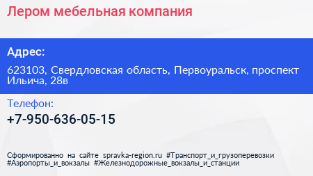 Лером, мебельная компания по адресу 623103, Свердловская область, Первоуральск, проспект Ильича, 28в в дальнейшем Организация, размещена в следующих категориях: