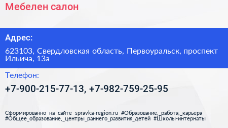 Мебелен, салон по адресу 623103, Свердловская область, Первоуральск, проспект Ильича, 13а в дальнейшем Организация, размещена в следующих категориях: