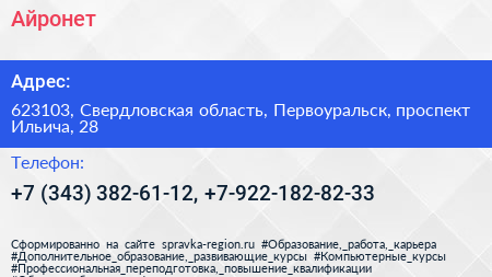 Айронет по адресу 623103, Свердловская область, Первоуральск, проспект Ильича, 28 в дальнейшем Организация, размещена в следующих категориях: