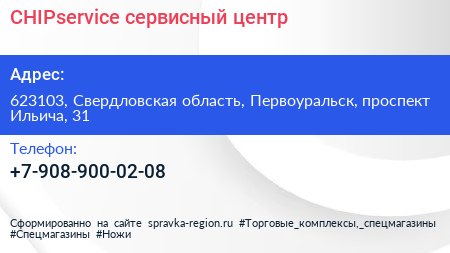 CHIPservice, сервисный центр по адресу 623103, Свердловская область, Первоуральск, проспект Ильича, 31 в дальнейшем Организация, размещена в следующих категориях: