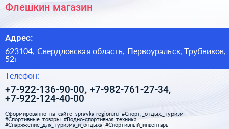 Флешкин, магазин по адресу 623104, Свердловская область, Первоуральск, Трубников, 52г в дальнейшем Организация, размещена в следующих категориях: