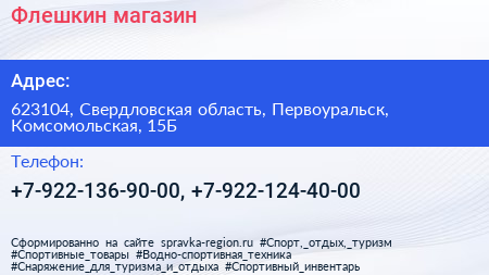 Флешкин, магазин по адресу 623104, Свердловская область, Первоуральск, Комсомольская, 15Б в дальнейшем Организация, размещена в следующих категориях: